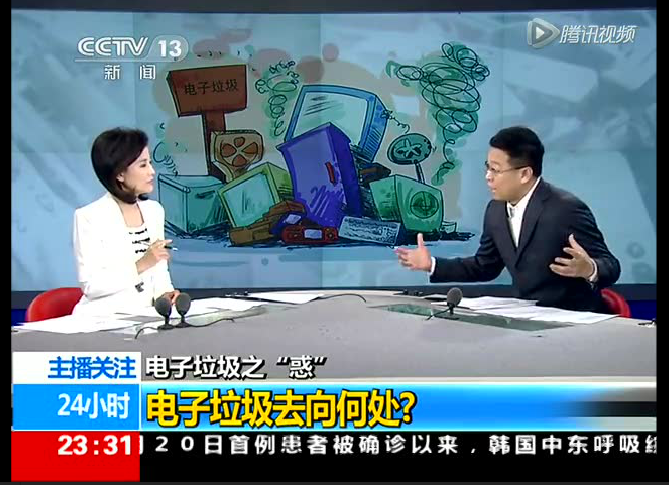 2015年6月21日,中央電視臺新聞頻道播出“電子垃圾去向何處”的采訪報道,就電子垃圾的現(xiàn)狀危害及正確的處理方式,華新環(huán)保總經(jīng)理王建明及子公司香蕉皮副總經(jīng)理肖賢飛等,接受了采訪。
